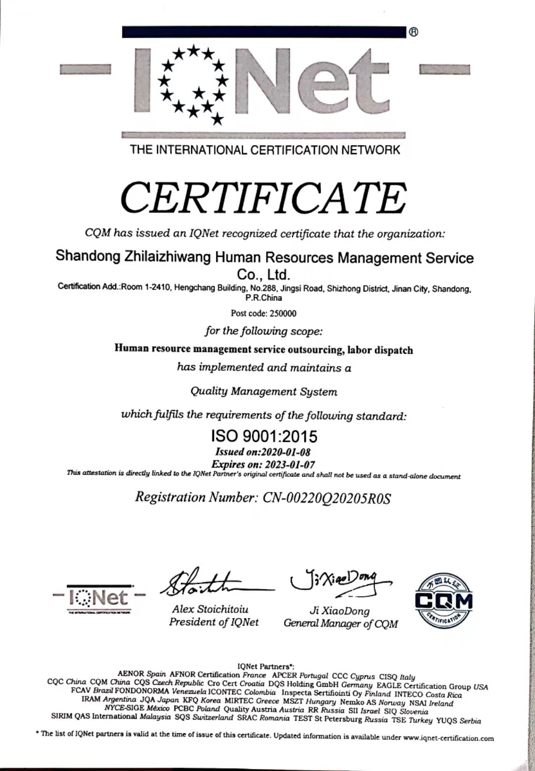 随着市场上对产品和服务认证要求的提高,山东职来职往人力资源管理服务有限公司随市场所需取得了产品和服务质量管理认证体系ISO9001认证。